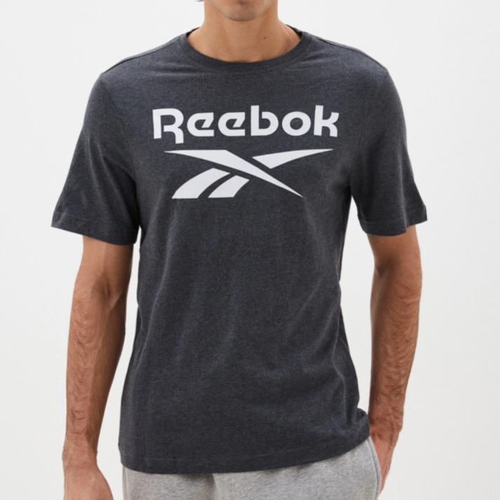 تیشرت مردانه با طراحی لوگوی بزرگ و برجسته Reebok روی سینه. جنس پارچه معمولاً از پنبه نرم یا ترکیب پنبه و پلیاستر است که حس راحتی و دوام بالا را فراهم میکند. گزینهای ایدهآل برای استایل روزمره و اسپرت.